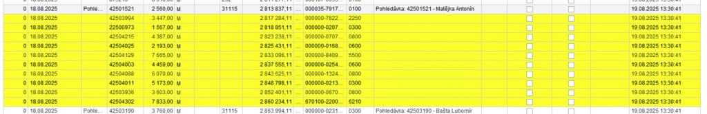 - Pohyby, které nebyly automaticky zaúčtované, je potřeba zaúčtovat ručně