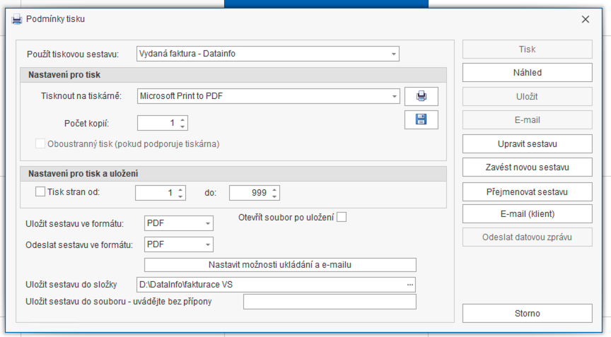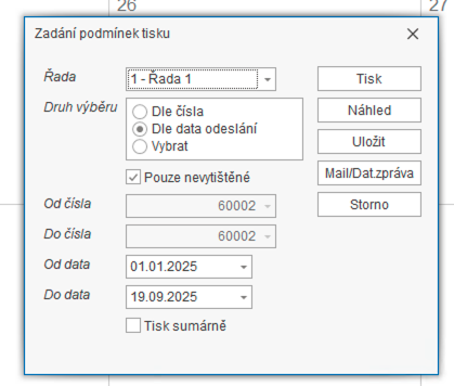 - V menu zvolte Fakturace / Vydané faktury / Tisk faktur – hromadný
