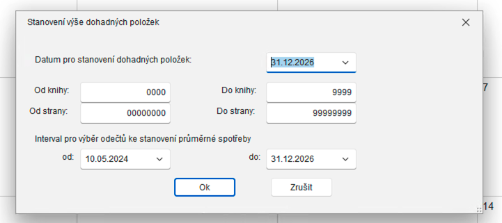 - Zvolte datum pro stanovení dohadných položek a zvolte Ok